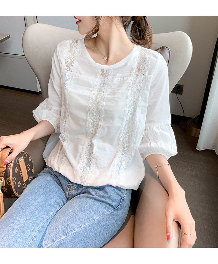 봄여름 펀칭 레이스 벌룬 소매 쉬폰 블라우스 상의 블라우스 여 펀칭 봄여름 블라우스