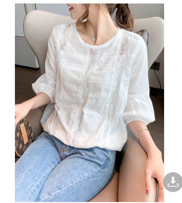 트렌디한 펀칭 레이스와 쉬폰 소재 블라우스 연출 이미지