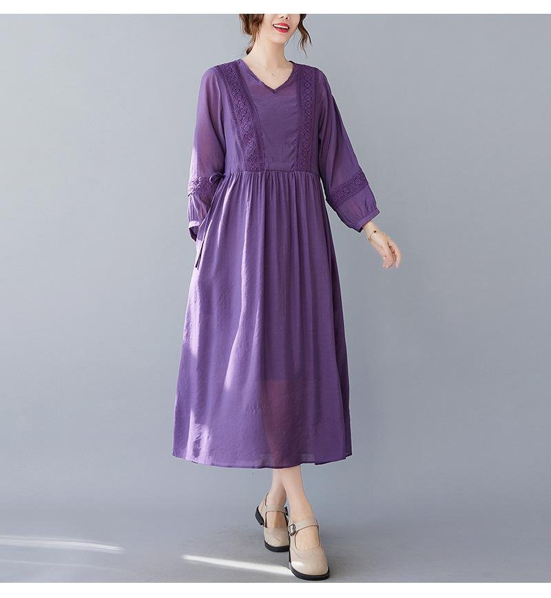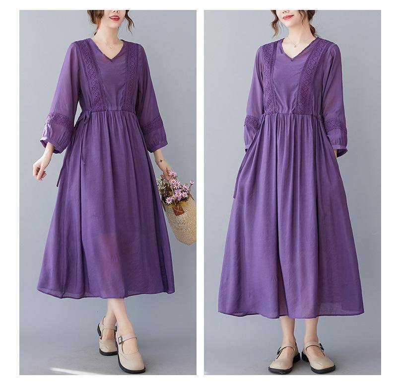편하고 모던 심플 7부 문예풍 스트랩 원피스 롱 브이넥