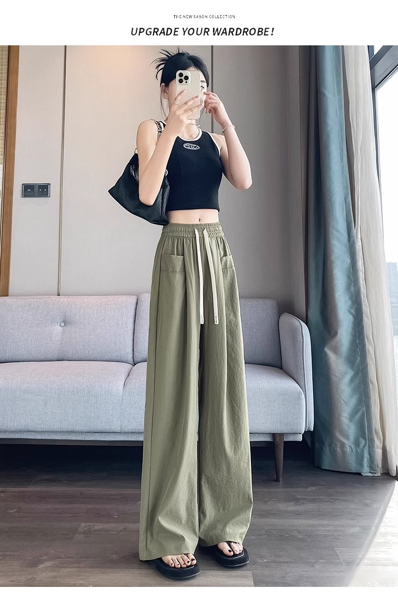 여성 여름 아웃도어 속바지 통기성 아이스 와이드 팬츠 하이웨스트 일자 슬림 와이드 팬츠
